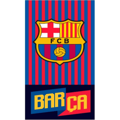 Det iøjnefaldende design prydes af FC Barcelonas officielle logo, gentagne FCB-mønstre og navnetræk i stærke farver. Det gør håndklædet til en oplagt gave til unge fans, der elsker at vise deres klubstolthed – både ved poolen, på stranden og efter badet.