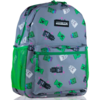 Rygsæk i grå med masser af grønne detaljer og seje Creepers-motiver i allover-print. Rygsækken har stort lynlåsrum, mindre rum i fronten samt grønne sidelommer i net.