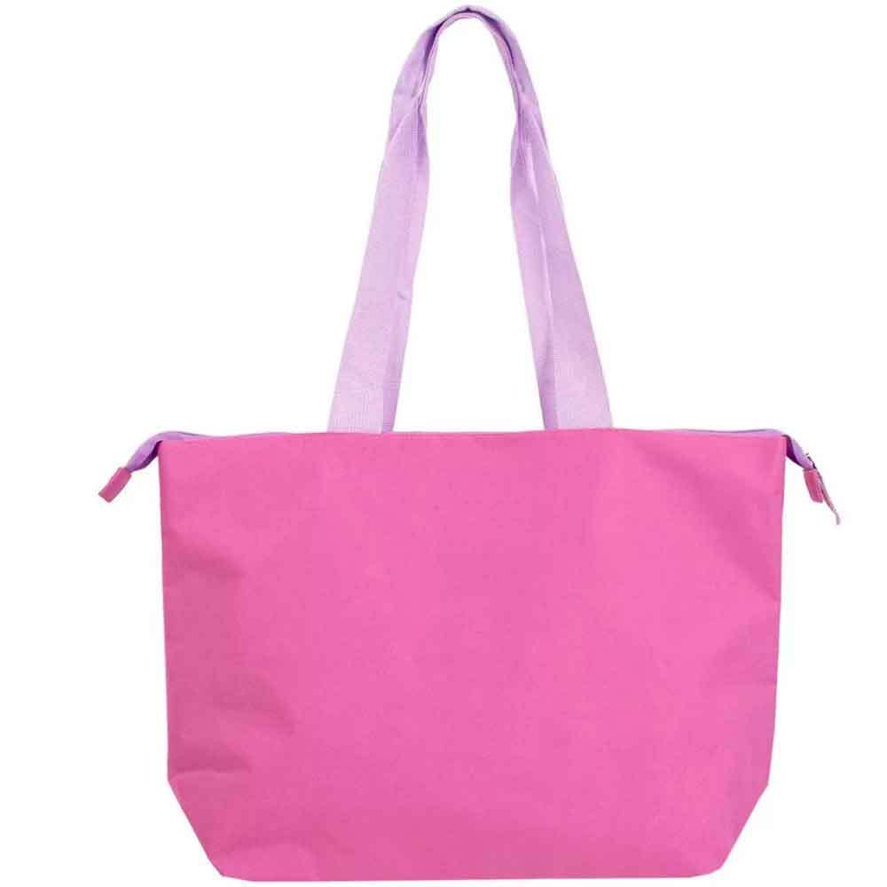 Gør strand- eller udflugtsdagen ekstra sjov med denne Minnie Mouse strandtaske i en smuk pink nuance. Tasken er dekoreret med et stort, charmerende motiv af Minnie Mouse med sløjfe og prikker på den ene side, og har ensfarvet bagside i stærk pink.