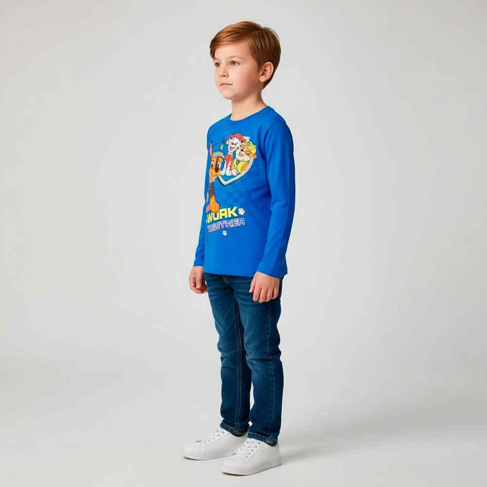 Denne blå Paw Patrol T-shirt med lange ærmer er skabt til børn, der elsker universets heltehvalpe. T-shirten er fremstillet i 100 % blød og åndbar bomuld, som gør den behagelig at bruge både i skolen, børnehaven og til fritidsaktiviteter.