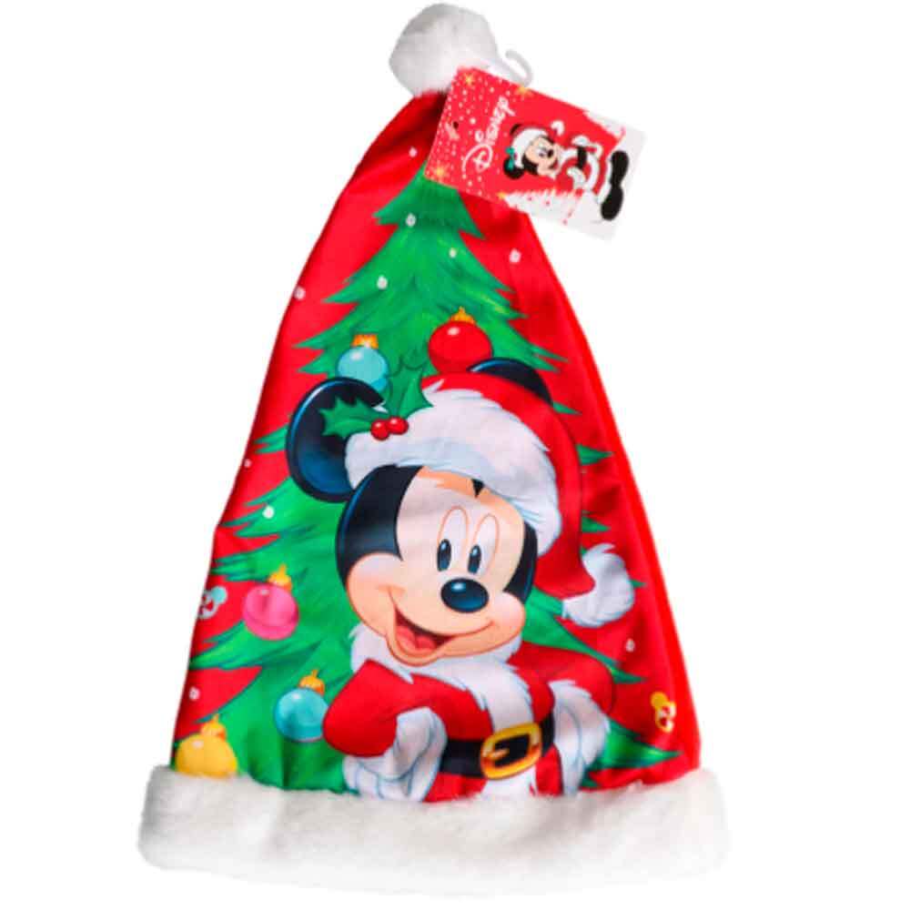 Klassisk Disney Motiv: Rød nissehue med Mickey Mouse i nissetøj.