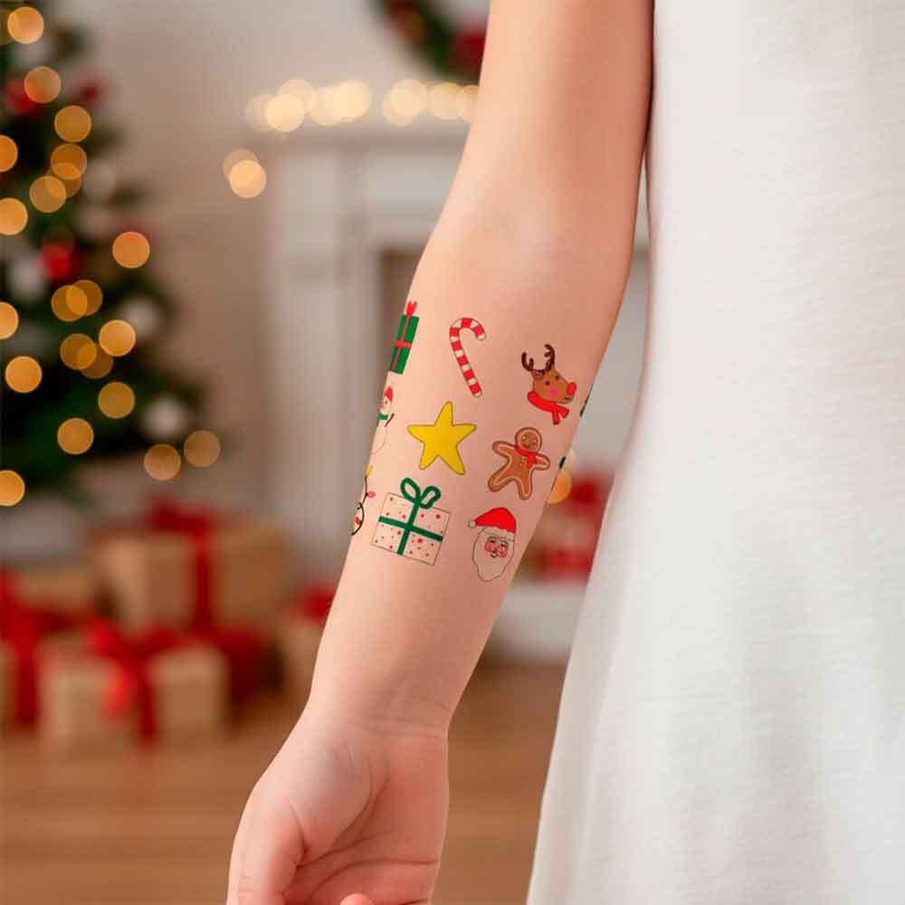 Skab julestemning på en sjov måde med disse midlertidige tatoveringer, perfekte til festlige lejligheder.