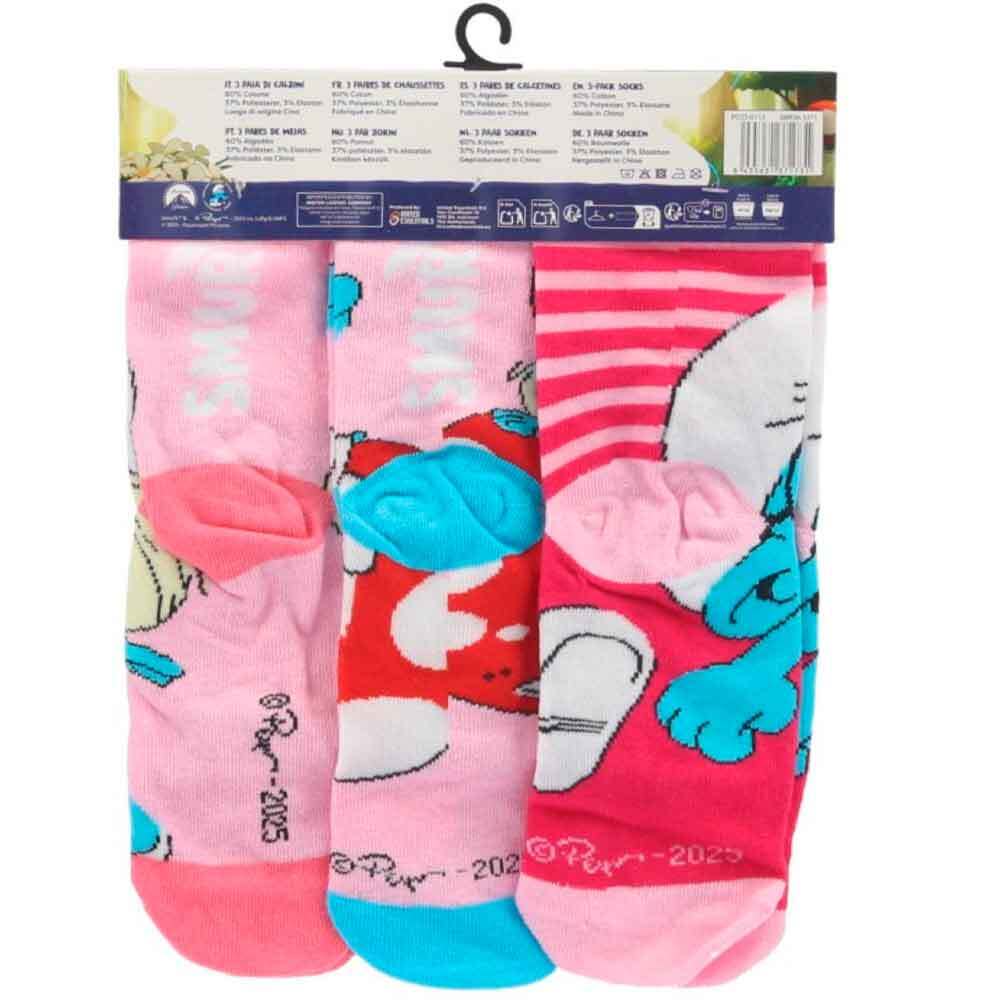 Gør strømpeskuffen magisk med denne sjove 3-pak Smølferne strømper. Hvert par er prydet med de elskede figurer, herunder den søde Smølfine, i livlige lyserøde farver og flotte motiver som svampe og striber.