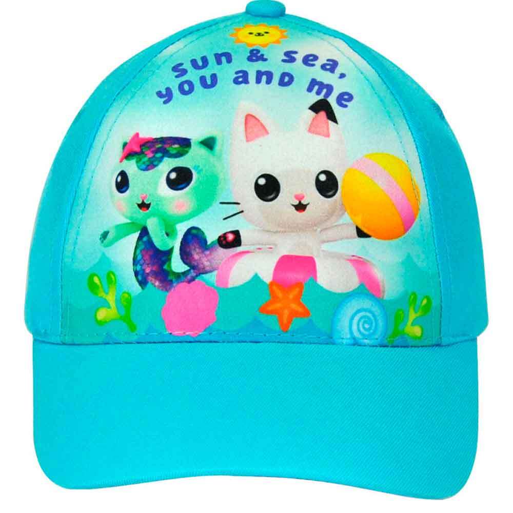 Gør de solrige dage sjovere og sikrere med denne seje Gabby's Dollhouse kasket i en frisk turkis farve.