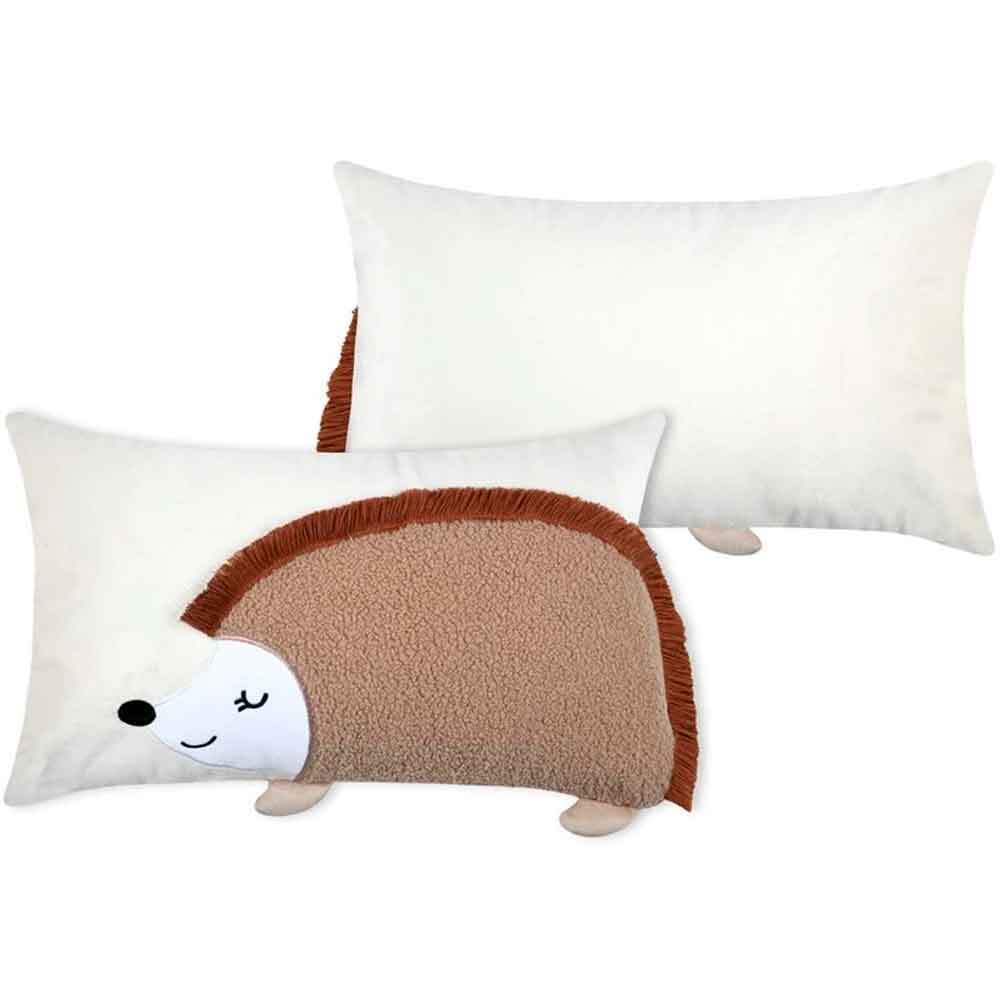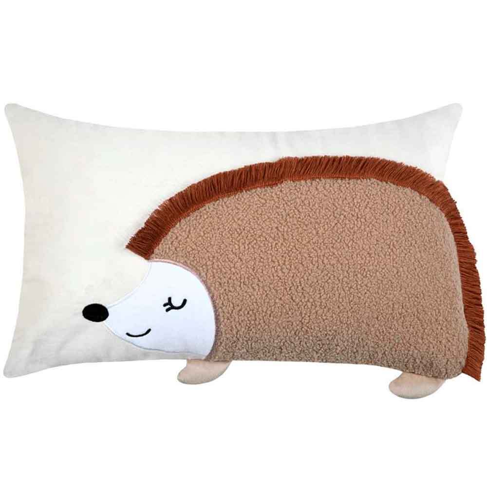 Sød pindsvinepude i naturfarve blød pude til børneværelset