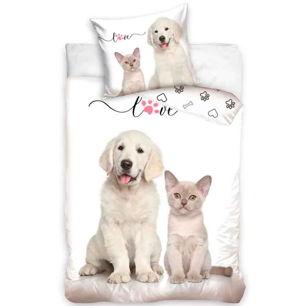 Bomulds Sengetøj med Hund og Kat 140x200cm