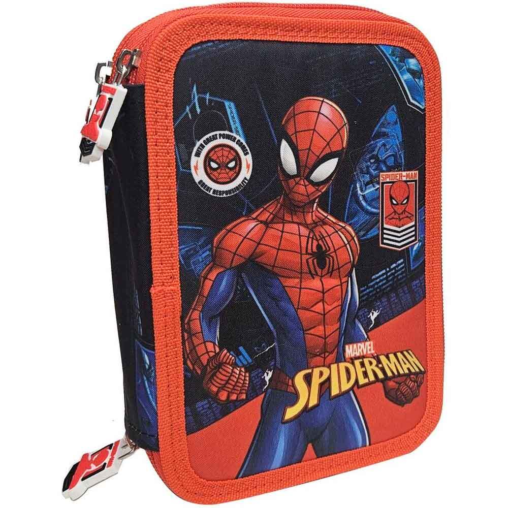 Det officielle Spiderman tredobbelte penalhus med 38 dele er det perfekte valg til børn, der elsker Marvels ikoniske superhelt. Med sit mørkeblå og røde design og actionfyldte Spiderman-motiv bliver det hurtigt en favorit i skoletasken.
